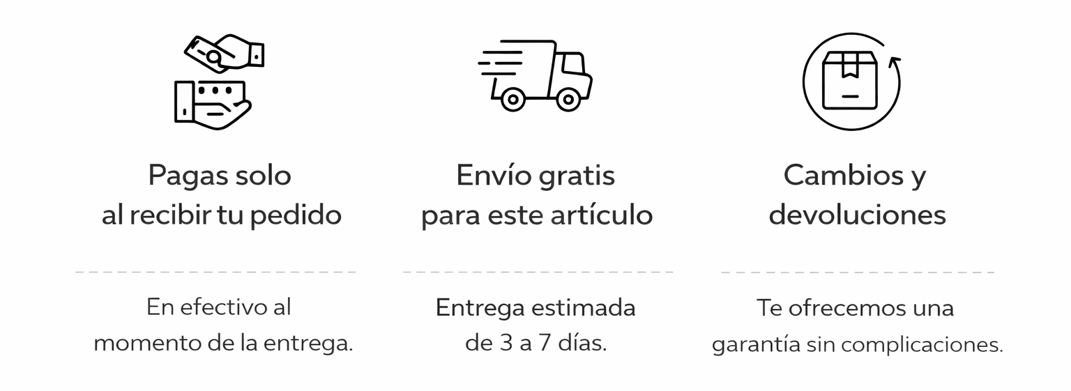 Pagas únicamente cuando recibes el producto en tu domicilio, sin necesidad de realizar pagos anticipados.